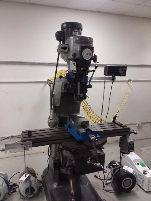 • Bridgeport #X005-08 Drill press w/ Kurt Anglock Milling Machine Vice w/ Handle.includes Extra Collets & (6) Drawer Storage Cart on Wheels w/ Contents